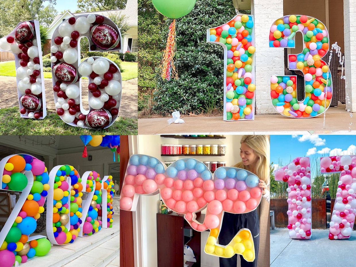 Celebrate with our balloon mosaic numbers or fully custom shapes—perfect for birthdays, anniversaries, graduations, brand launches, & more. From classic numbers (3, 4, or 5 ft tall) to custom designs like logos, letters, or unique event shapes, each piece is custom-built to match your theme.